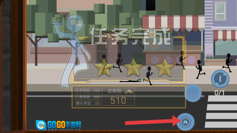 游戏的核心玩法是在公园、城市街道这类场景里,对准并射击指定的火柴人目标;当任务完成后,会弹出任务完成的提示,同时结算对应的任务奖励。