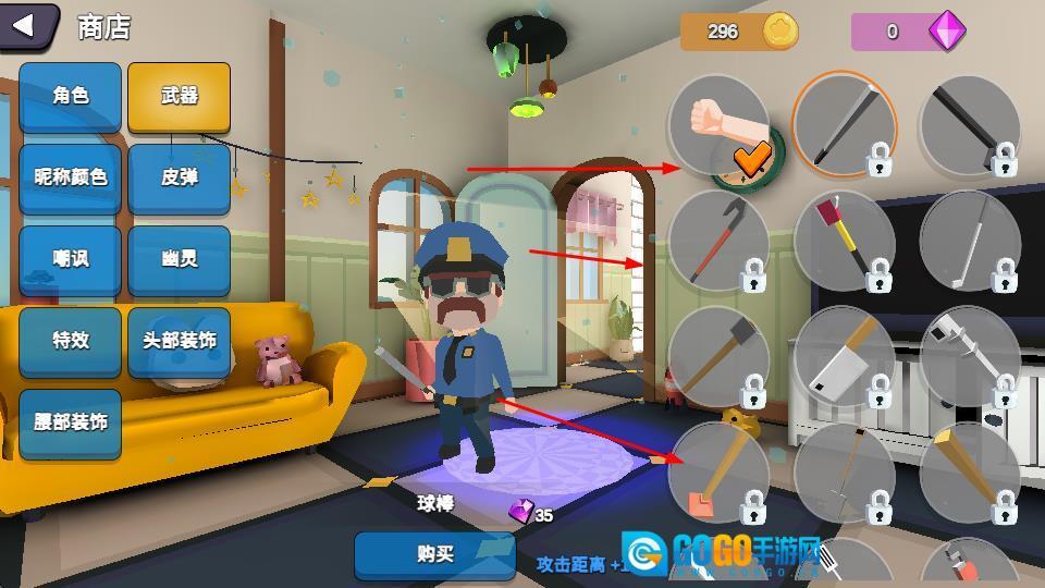 进入商店界面后,玩家可以用金币之类的货币购买武器、角色装饰等各类道具,以此让游戏体验更加丰富,或是在抓捕与躲藏的过程中获得更大优势。