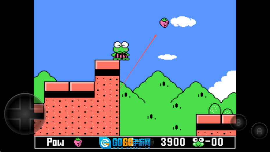控制大眼蛙去收集空中的草莓之类的道具,这样就能提升分数,还可能获得特殊能力。