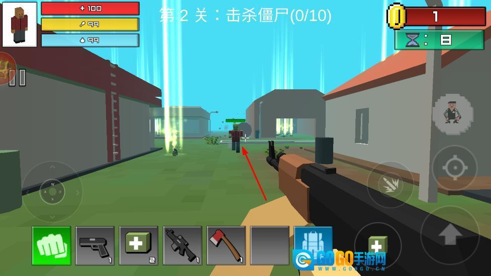 玩家通过点击操作来实现移动与射击:点击屏幕上的任意位置,角色就会朝着该方向移动;点击出现的僵尸,角色会自动完成瞄准和射击动作。只要灵活调整点击的位置,就能避开僵尸的包围。