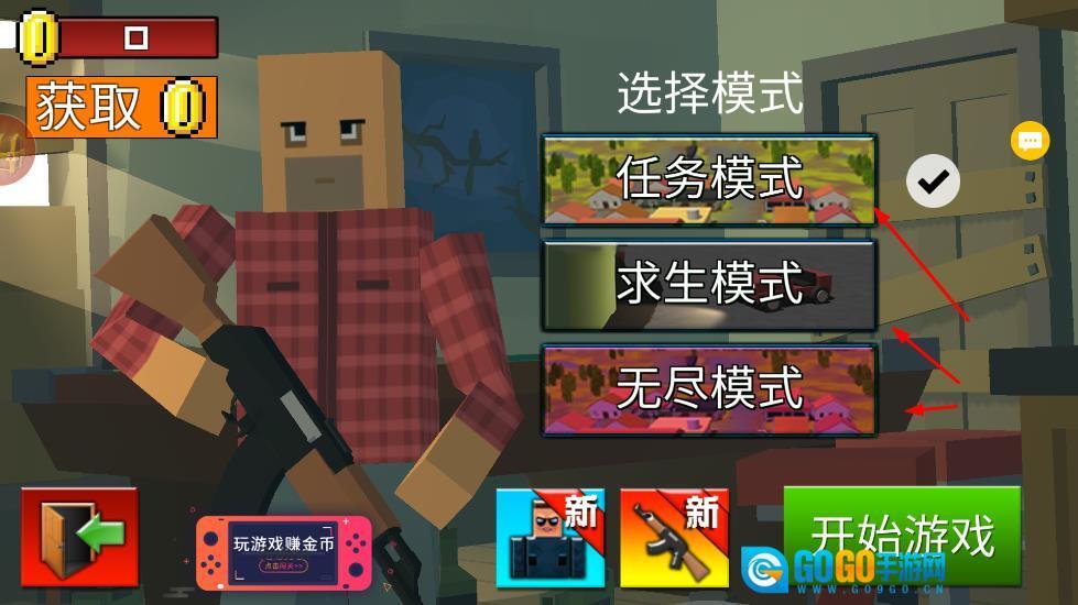 进入游戏后,可选择任务模式、求生模式或无尽模式,点击“开始游戏”,即可开启不同类型的挑战。