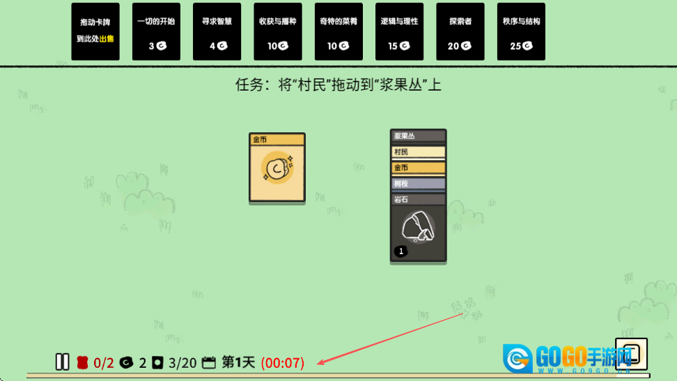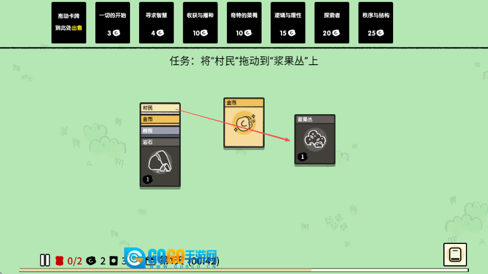 任务调整为把村民拖到浆果丛上,找到村民卡牌后将其拖至浆果丛卡牌处。