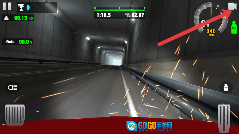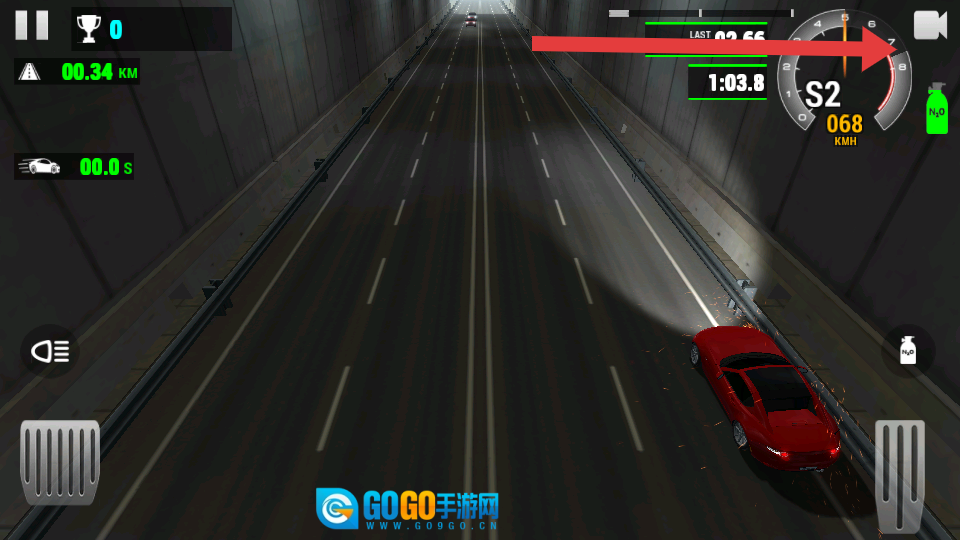 先熟悉界面上的核心信息,重点留意屏幕中央的速度表,在初始阶段要把车速控制在安全范围内,之后点击右下角的油门开始竞速。