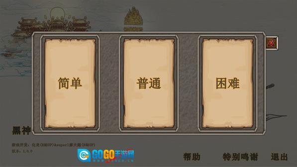 进入主界面后,首先点击“帮助”选项查看操作说明,接着从简单、普通和困难三个难度中选择一个关卡难度,然后搭配上合适的buff。