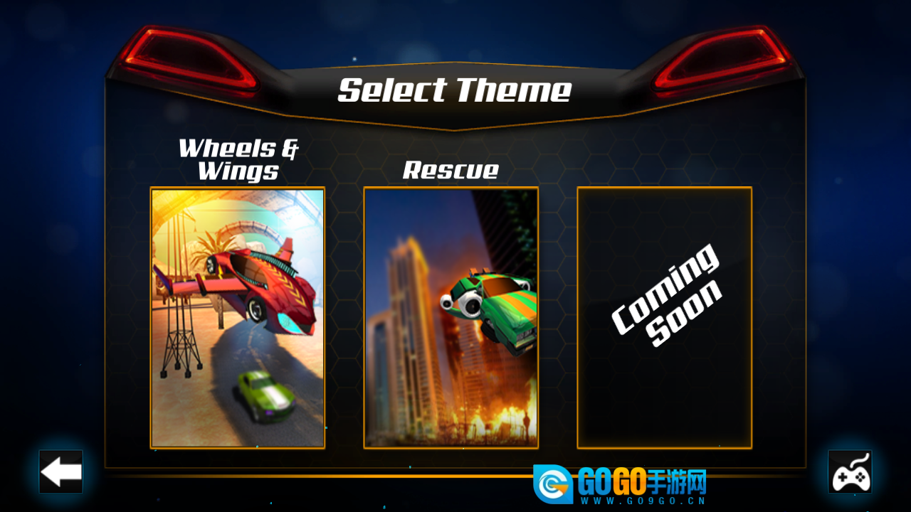 在主题选择页面,建议优先选择【Wheels-Wings】主题,这里能同时体验飞行与驾驶两种玩法。你需要驾驶红色车辆完成任务,过程中要留意切换飞行和行驶模式,通过穿过拱门、绕圈等操作来积累分数。