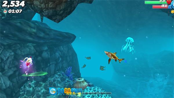 使用加速功能会导致鲨鱼的饥饿度上升,要留意这两者之间的平衡,这点非常关键。
