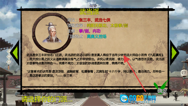 选择武当派,跟随张三丰修习太极剑,凭借内力进行战斗,感受门派独有的特色。