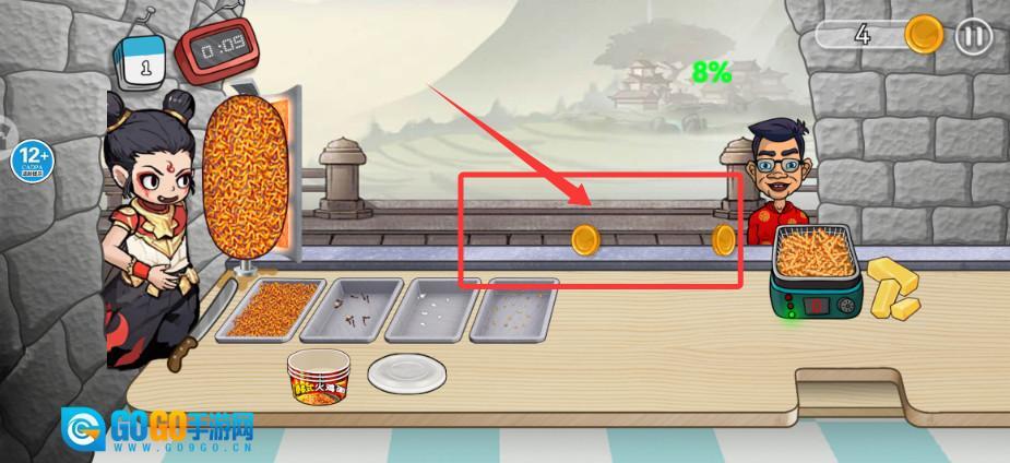 顾客的订单完成后,金币就会掉落,及时把它们收集起来,就能用来升级店铺里的设施,或者解锁新的菜品。