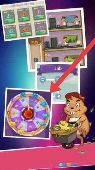 进入“Lab”(实验室),转动箭头所指的幸运轮盘,赢取金币、道具等奖励,为竹鼠养殖升级提供助力。