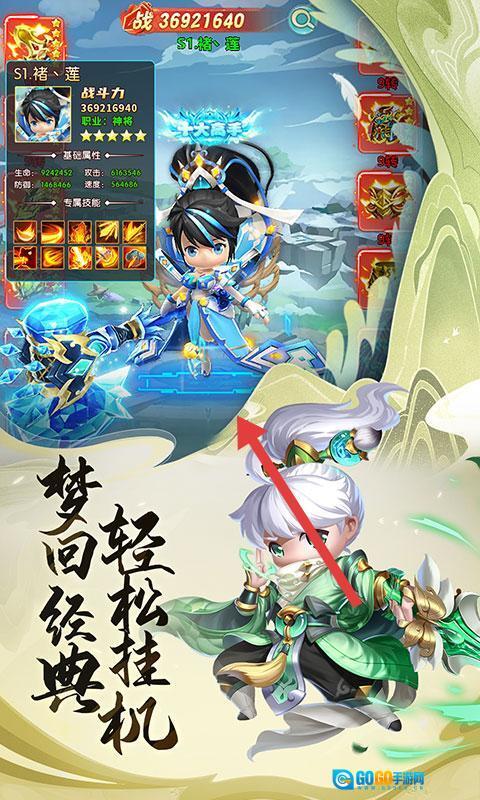 查看角色战力情况,合理搭配技能组合,依靠挂机模式推进进程,获取各类资源来提升自身实力。