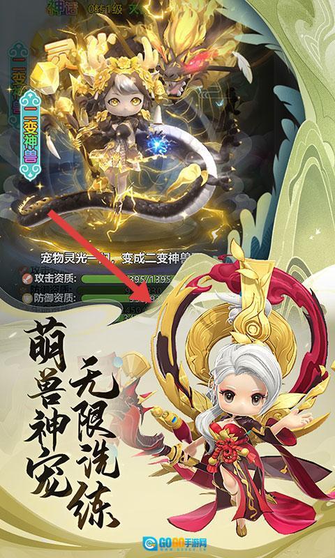 培养可爱的神兽宠物,提升它们的资质,参与洗练环节,让它们进化来助力冒险。