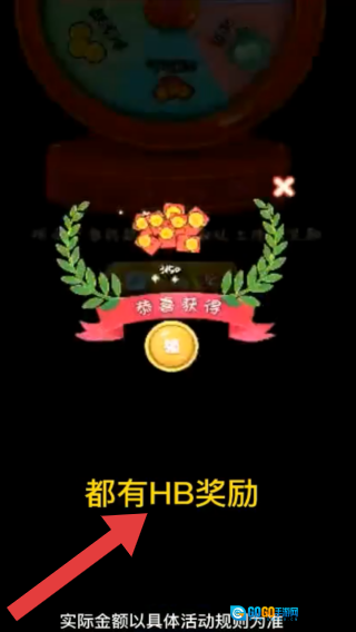 实体信息包含“恭喜获得”“都有HB奖励”“实际金额以具体活动规则为准”,这些内容属于活动奖励提示,用于告知用户参与转盘等活动后的奖励情况。
