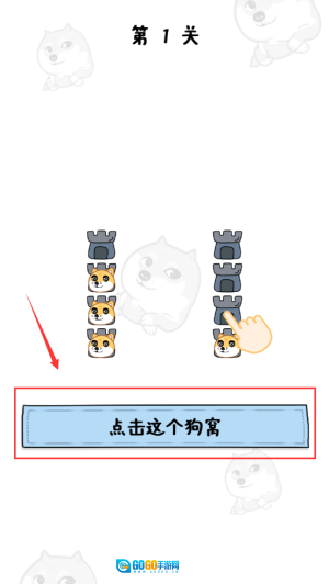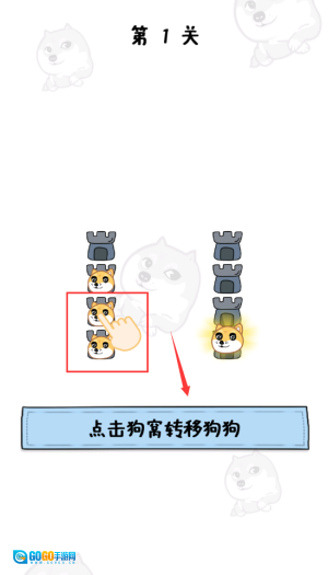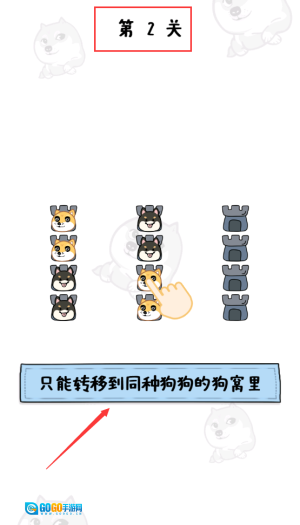 拖动中间狗到同种狗窝,遵守规则过关。