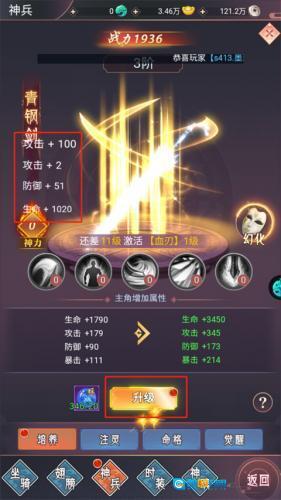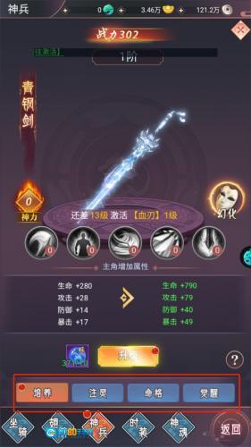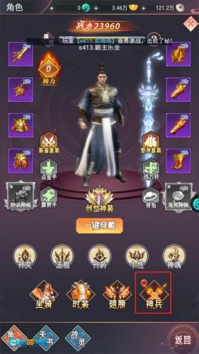 2、在角色界面下方有一个神兵按钮,点击进入。