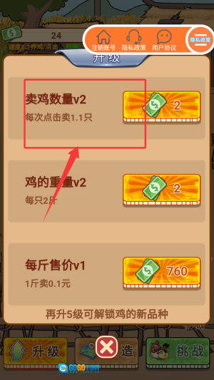可以利用农场收益来升级禽舍的规模,进而逐步把单次禽类的出栏数量提高到50只。