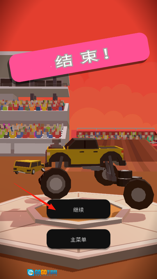 比赛结束后会进入结算界面,该界面会显示比赛结束的信息以及各赛车的排名情况。点击界面上的继续按钮,即可进入下一轮赛事或者查看本次比赛的奖励。玩家可以借助关卡推进机制,不断参与赛车挑战,而选择点击继续按钮是持续参与挑战的关键操作。