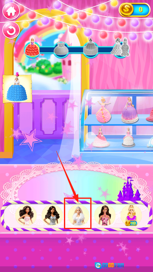 点击下方角色栏选定制作对象,选中目标娃娃后,即可开启蛋糕定制流程并推进后续制作步骤。