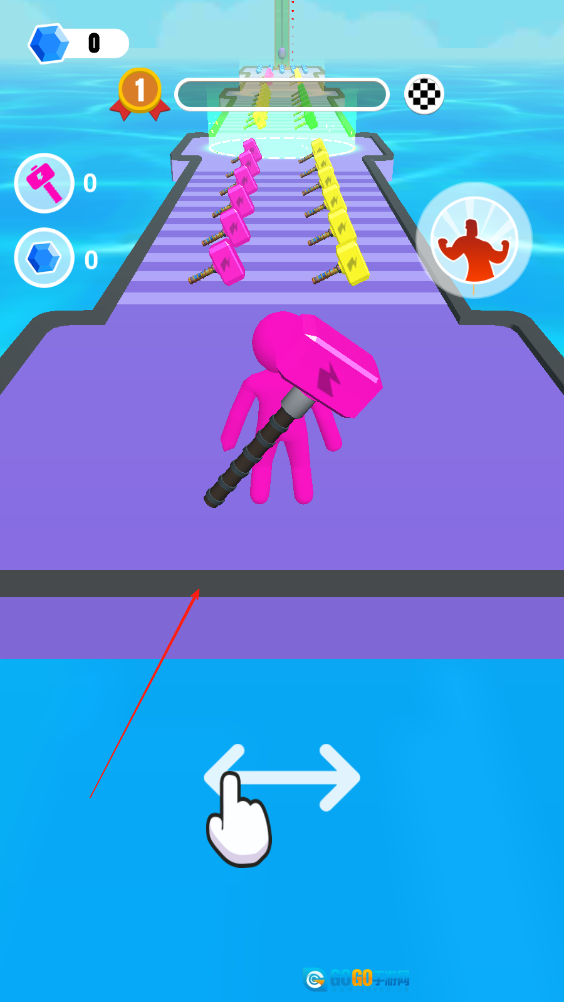 小人背着锤子,我们要操控小人收集与身体颜色相同的锤子,左上角会显示已收集的锤子数量。