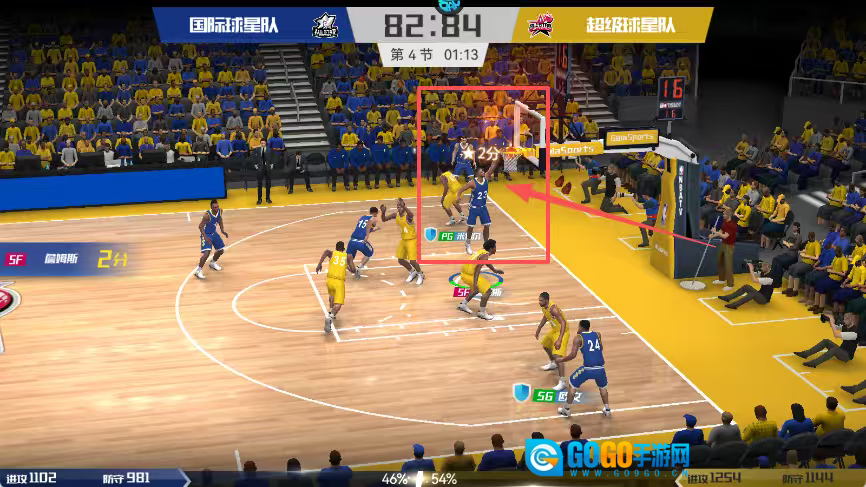 观察球员的上篮动作与防守表现,同时留意比分的动态变化以及球员各项数据的实时更新。
