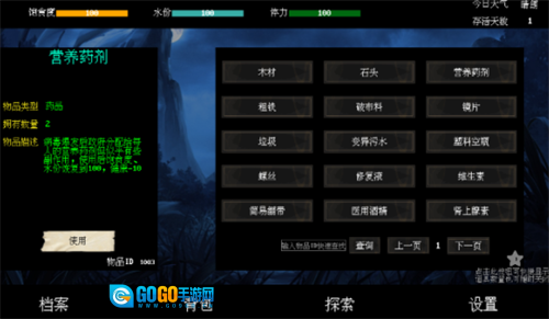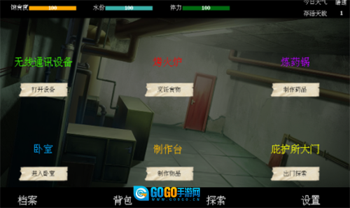 这款游戏采用文字形式呈现,玩家需在末日场景中,依据自身的饱食度、体力与水分状态来规划生存方案。