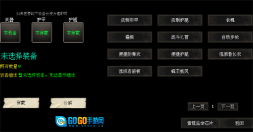 玩家点击背包按钮后,既能查看自己当前持有的物品,也能对角色的武器、护甲和护腿进行装备操作,以此完成角色的武装配置。