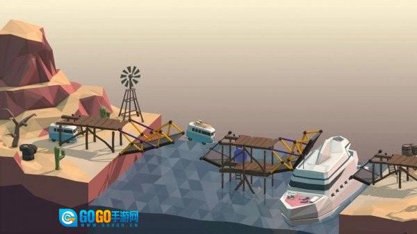 1、玩家要使用自己有的木材来搭建不同的桥梁,帮助自己的车子过桥;