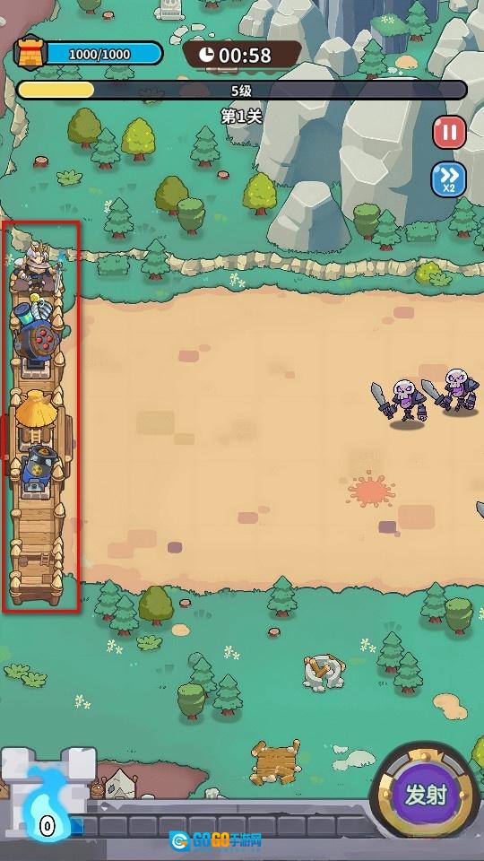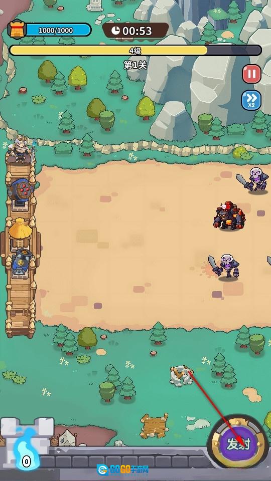 在这款游戏里,玩家的任务是守护左侧的城墙,避免它被敌人攻破。玩家需要不断击败一波又一波的敌人来提升等级,进而对自己的炮台开展建造与升级工作。