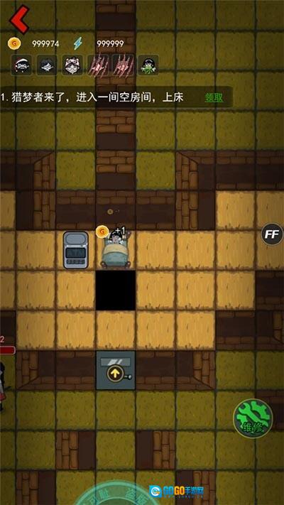躺下就能获得金币,这些金币可以用来升级或者购买各式各样的建筑,以此抵御红衣鬼的攻击。不同种类的建筑有着不一样的功能,玩家得合理地搭配使用它们。