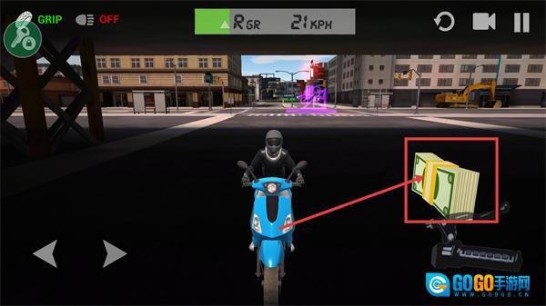 在行驶过程中收集钞票类道具,同时留意保持【21-KPH】的行驶速度,并确保在【GRIP-OFF】状态下稳定行驶。