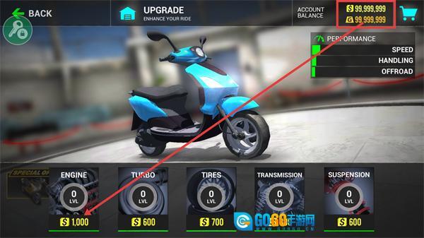 直接拉满养成上限,金币钻石无限供应,所有酷炫摩托和顶级升级套件一键解锁,开局就能享受满配战力。