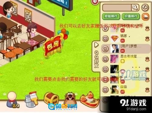 好的,我们要是发现金币和经验不够用该怎么解决呢?可以去好友家里蹭饭哦。具体情况就像下面图1、2展示的那样。
