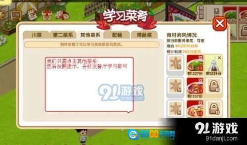 下一个环节是学习菜肴,我们只需点击“菜谱”,待界面呈现图二样式后,再点击其他菜系,随后前往好友家学习菜肴。需要注意的是,学习需按等级逐步进行(具体可参考下图),且手艺学习时长不足30分钟时,是无法提前召回的。