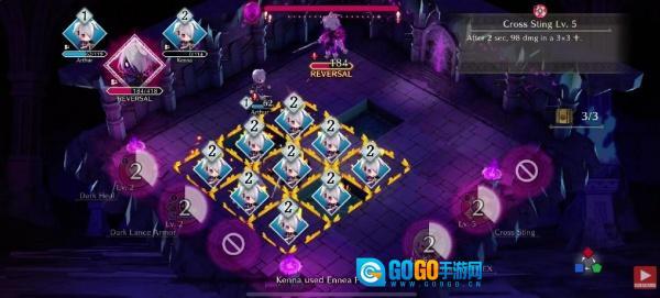 组建一支三人小队,踏入迷宫展开挑战,通过拖放技能图标的操作来进行战斗。