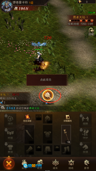 在行进途中和遇到的敌人进行即时战斗,点击屏幕就能释放技能连招,战斗胜利后可以获取各种各样的装备。