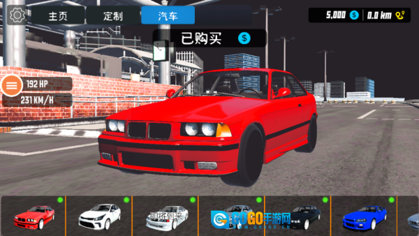 玩家进入游戏后,点击画面左上角的“汽车”按钮,就能在弹出的界面里购买并解锁各种不同型号的汽车,具体操作可参考下图。