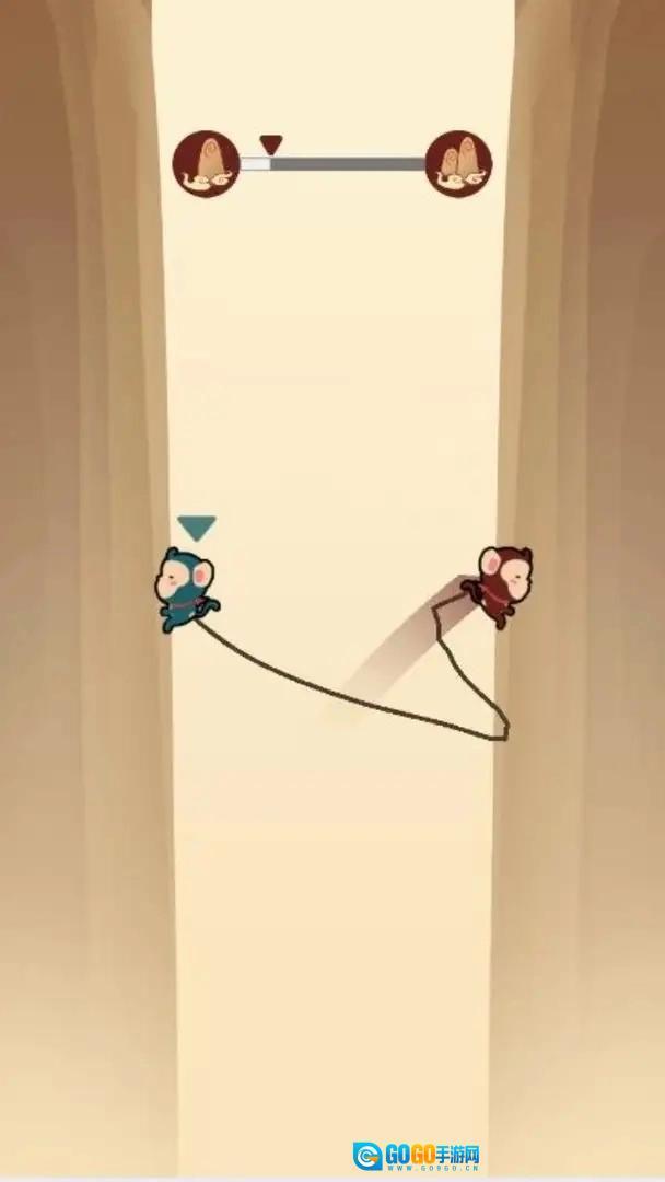 游戏的核心玩法充满巧思:两位玩家各自操控着被绳索拴在一起的萌萌小猴子,得靠默契配合、共同努力避开各类危险障碍,持续往前探索。行进的距离越长,得到的分数也就越高,这不仅是对操作技能的检验,更是对玩家之间默契度的终极考验。