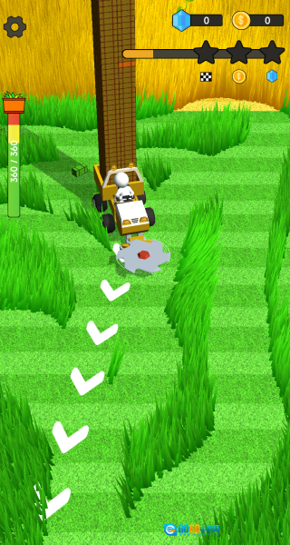 在割草时,你可以借助屏幕上的虚拟摇杆来控制割草车的移动方向,通过灵活调整它的位置,让锯片能够覆盖到更多有杂草的区域。
