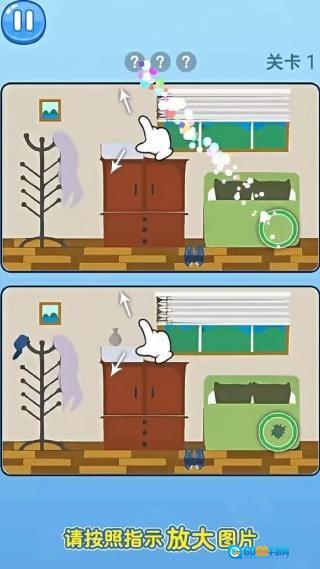 发现不同之处后,点击左边或右边图片的对应位置来标记,系统会立刻反馈判断结果并显示还剩下多少差异数。