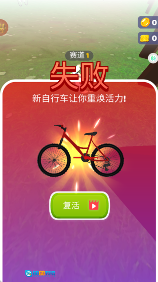 如图所示,只要成功冲过终点线,就能赢得本次挑战,同时获得相应的金币奖励。这些金币可以用来购买各式各样的自行车。