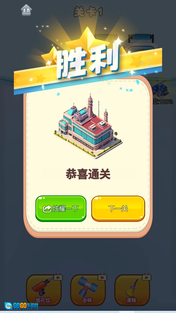 6.通关后点击下一关即可。