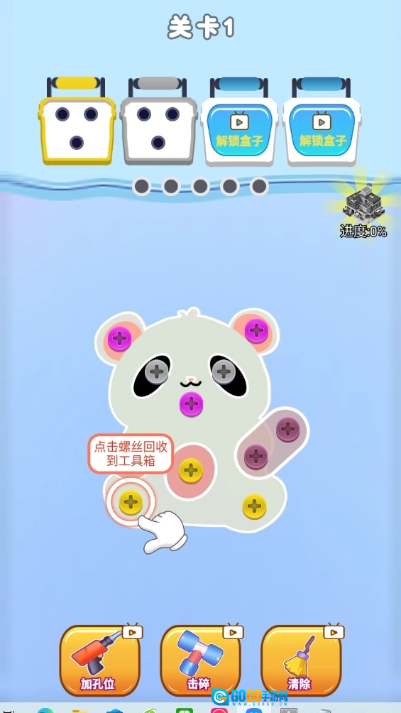 3.你需要将螺丝回收到工具箱,用手指点击螺丝。