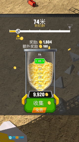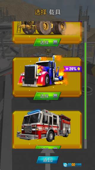 就像图里展示的那样,这里有各种各样不同的工程车供玩家选择,大家可以通过积累金币来解锁它们,进而去参与不同赛道上的跳跃挑战。