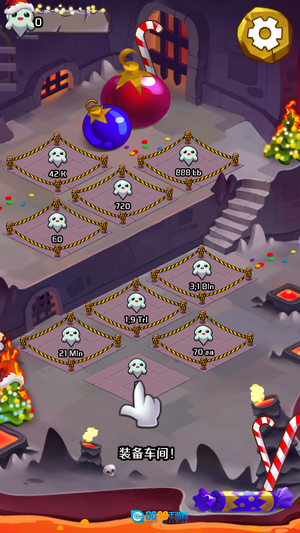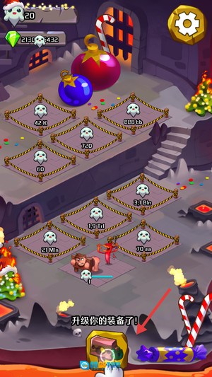 点击屏幕上的幽灵图标就能进入装备车间,正式开启地狱管理与角色养成的核心流程。