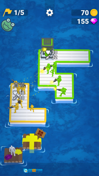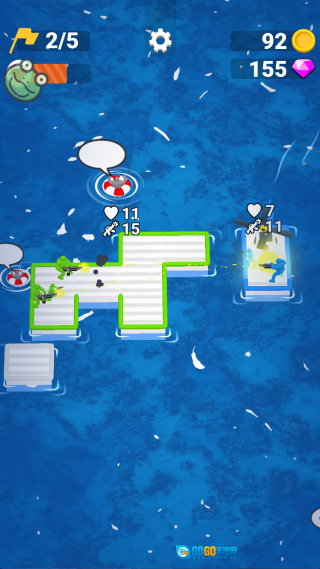 在海上相遇后,双方的木筏会自动开启射击对抗。你得巧妙移动位置,让敌人暴露在我方火力范围内,同时守护好自己的队员。