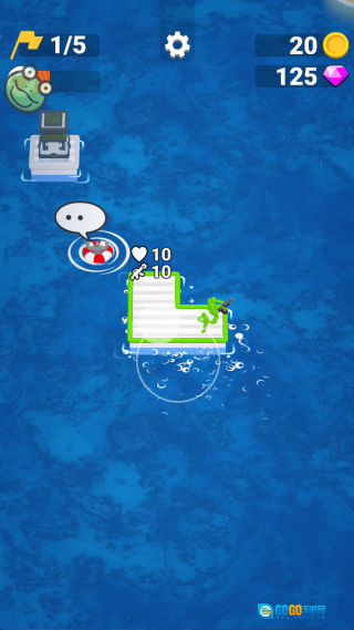 通过滑动屏幕来操控木筏,打捞水面上漂浮的资源,用于扩建船体和制作各类设施。同时,寻找并救助落水的幸存者,以此增加队伍的成员数量。
