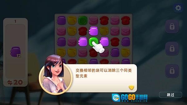 6、我们的本关的关卡目标是消除12个紫色方块。
