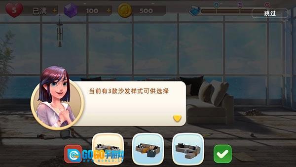 3、目前有3款沙发样式可供挑选,选好后点击右侧的对勾就行。