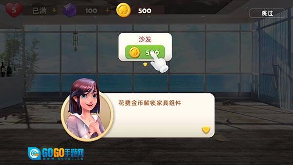2、消耗金币就能解锁家具组件,其中沙发需要500金币。
