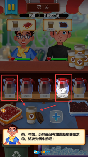 调制饮品时按照先液体后固体的顺序添加原料,这样能防止小料附着在杯壁上造成搅拌不充分的情况,让玩家可以化身全能店主,体验多元化经营的乐趣。