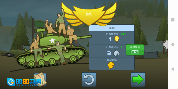 只要成功消灭关卡里的敌人就能完成这一关。获得的奖励可以用来解锁更多坦克。